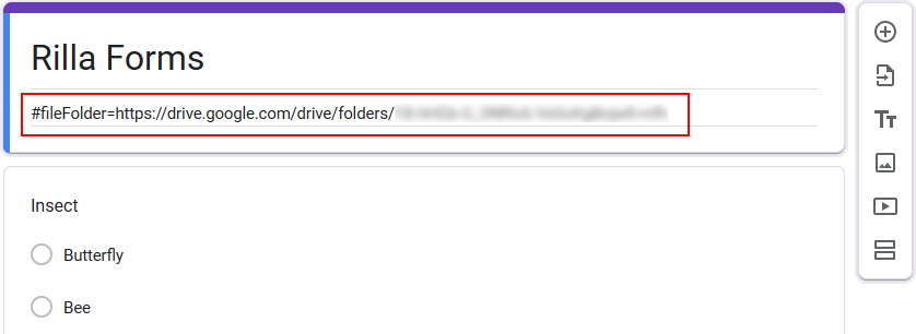 In order to capture files (photos, audio, attachments), the form must contain a #fileFolder tag in the form description. This specifies the Google Drive™ folder where files will be uploaded to.